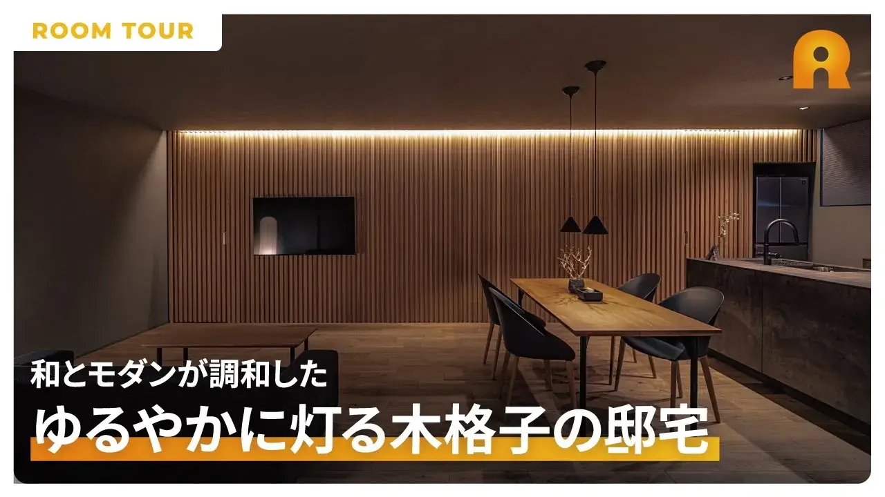 【ルームツアー】和とモダンが調和した『ゆるやかに灯る木格子の邸宅』|窓がなくプライベート感のある高級旅館のような家